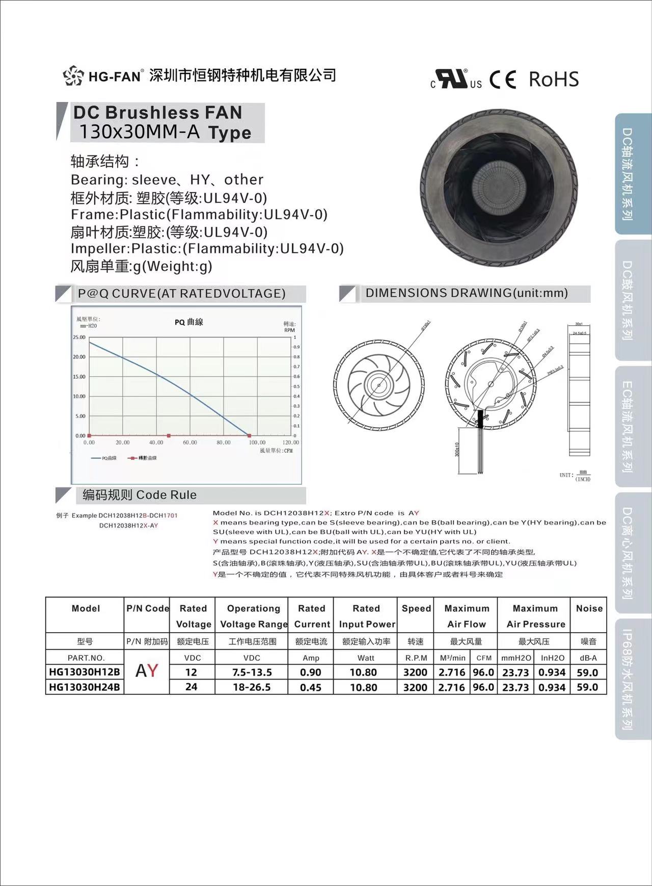 产品名称:130X30MM离心风扇